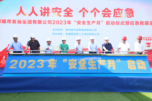 為認(rèn)真貫徹《鄭州市國資國企2023年“安全生產(chǎn)月”活動實施方案》要求,落實國家、省市安全生產(chǎn)工作部署,提升在建項目人員安全意識和避險逃生能力。6月6日,鄭州城發(fā)集團(tuán)在龍湖金融中心外環(huán)7號樓項目舉行2023年安全生產(chǎn)月啟動儀式暨應(yīng)急救援演練活動。