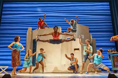 迪斯科風格在《媽媽咪呀!》中無處不在。從音樂、舞蹈,到服裝設(shè)計,都給人以舞廳“蹦迪”的動感與歡樂體驗。而ABBA 樂隊熱情洋溢的曲風,轉(zhuǎn)化成希臘島嶼的陽光、沙灘,所有的金曲與熱舞也洋溢著地中海燦爛陽光下的積極與樂觀,猶如一首生命的贊歌。正如《星期日快報》的評價: