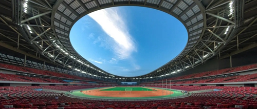 鄭州奧體中心體育場采用了“三角形巨型桁架+立面桁架+網(wǎng)架+大開口車輻式索承網(wǎng)格”的組合結(jié)構(gòu)體系設(shè)計。82米跨三角形巨型桁架,重量達1300噸,為同類之最;大開口車輻式索承網(wǎng)格結(jié)構(gòu)為全球最大懸挑,設(shè)計最大懸挑54.1米,其中,環(huán)向密封拉索直徑為130毫米、單個索夾重達6.5噸,均為國內(nèi)之最。項目整體形成的《鄭州奧體中心綜合建造技術(shù)》,成果總體達到國際先進水平。