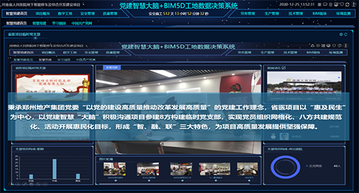 鄭州地產(chǎn)集團(tuán)投資管理有限公司以河南省人民醫(yī)院地下智能停車(chē)及綜合開(kāi)發(fā)建設(shè)項(xiàng)目作為BIM技術(shù)應(yīng)用試點(diǎn)項(xiàng)目,以黨建智慧大腦作為引領(lǐng),通過(guò)BIM5D技術(shù),大大提升了項(xiàng)目部對(duì)現(xiàn)場(chǎng)安全文明標(biāo)準(zhǔn)化施工、過(guò)程質(zhì)量控制、圖紙深化、施工方案及技術(shù)交底、進(jìn)度工期控制、成本管控等多方面的管理水平,不僅保障施工安全,更能保障建筑質(zhì)量。