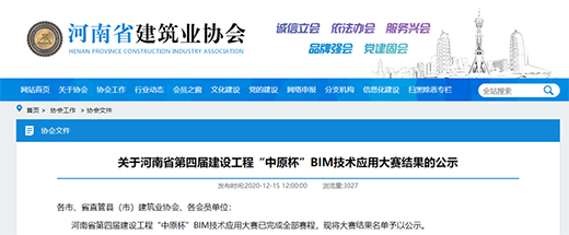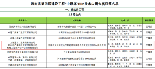 近日,由河南省住建廳指導(dǎo)、河南省建筑業(yè)協(xié)會(huì)主辦的河南省第四屆建設(shè)工程“中原杯”BIM技術(shù)應(yīng)用大賽獲獎(jiǎng)名單揭曉,經(jīng)過(guò)層層評(píng)審,由鄭州地產(chǎn)集團(tuán)投資管理有限公司主導(dǎo),上海建工二建集團(tuán)有限公司、機(jī)械工業(yè)第六設(shè)計(jì)研究院有限公司配合完成申報(bào)的河南省人民醫(yī)院地下智能停車(chē)及綜合開(kāi)發(fā)建設(shè)項(xiàng)目BIM技術(shù)應(yīng)用榮獲建筑類綜合成果三等獎(jiǎng)。
