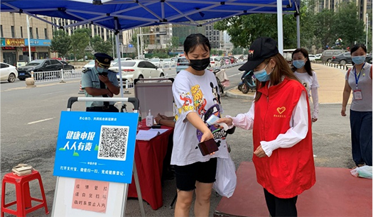 疫情防控刻不容緩。志愿者們首先仔細(xì)詢問了社區(qū)值守人員防疫工作流程及細(xì)節(jié),認(rèn)真記錄社區(qū)防疫的步驟和相關(guān)要求。志愿者們配合社區(qū)工作人員提醒大家正確佩戴口罩,對(duì)進(jìn)出社區(qū)人員進(jìn)行健康掃碼和體溫測量,一個(gè)個(gè)忙碌的身影為社區(qū)抗疫一線筑牢“防護(hù)墻”。