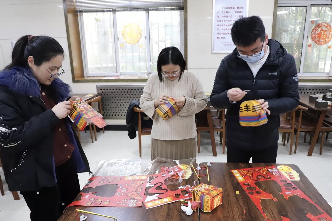 在DIY手工燈籠制作時,大家各自拿著半成品材料對照參考說明進行粘貼制作。相互交流、相互指導(dǎo),通過一步步的搭建、固定、粘貼,最終象征著喜慶、團圓的萌虎燈籠逐一呈現(xiàn)眼前。